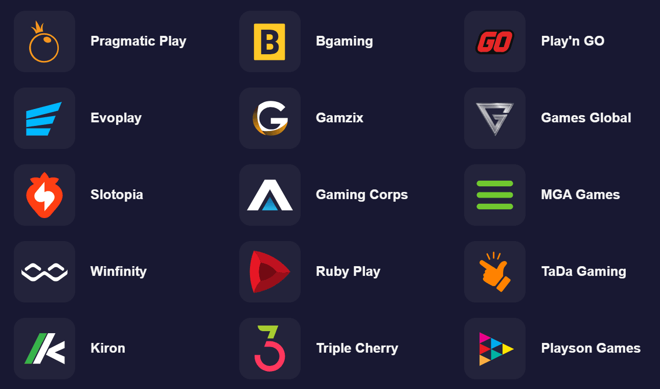 We are constantly expanding our list of partners to include both recognized market leaders and up-and-coming studios such as Pogiplay, Tada Gaming, Octoplay and InOut. All games are strictly checked for fairness and compliance with international standards - we don't cooperate with those we don't trust ourselves.